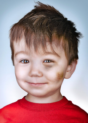 Over the past couple of days we have watched his bruise grow, get darker and move over to his eye. Amazingly enough, he hasn't complained about it at all.